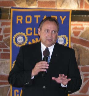 California Secretary of State Bill Jones, who is running as the Republican candidate for U.S. Senate this November was given an introduction by our Congressman Ed Royce. This impressive array of elected leaders was itself heralded by Fullerton Member Dick Jones. (Dick allowed how his relationship to his namesake went all the way back to Arkansas (which was DIS-allowed by our speaker!) Secretary Bill Jones has an impressing record of legislative accomplishment having been a California State Assemblyman, and State Secretary of the Nation's largest State. He is most well known as the originator of the state's THREE STRIKES LAW. The keystone of his address to our Club emphasized the principal role of government is to provide for the security of its citizens. Since the passage of his THREE STRIKES LAW crime rate has diminished as well as there are 2 million fewer victims of crimes by parolees. This in face of a rise in State populations since 1994 when the law was passed. It is a good law as presently stands. Propisition 66 on the November ballot aims to water-down the effectiveness of the THREE STRIKES LAW. It will remove burglary as applicable as a third felony. Judges will be permitted to exercise independent judgment in defining felonies. What may seem like a "misdemeanor" third crime charge not to be included, often finds that the defendant possessed a past record of serious felonies and repeated past parole violations. In light of the volume of criminal case load, our courts tend to favor liberal plea bargaining to the disadvantage of THREE STRIKES LAW effectiveness. Secretary Jones emphasized the importance of citizen volunteer organizations such as our Rotary Club of Fullerton provides. Participation by all members is the key to success. The welcome appearance of candidates in the upcoming November election is being scheduled by our Program Committee Chaired by Alt Tetreault. State Proposition issues and a Fullerton City Council candidates forum are on tap for October meetings. . |