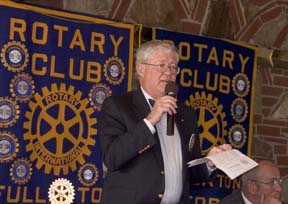 Fullerton Rotary’s Foundation Grants Bob Sattler provided a brief background of our own internal foundation and ended with the hope that it would be remembered in our planned giving now and in the future. He would like to see it become strong enough to be able to support local projects in perpetuity. He then turned the microphone over the members of the committee so that the grant awards could be announced: $1,000 to Ladera Vista for purchasing books for their media center $1,600 to Fern Drive to provide an LCD Projector for the teacher’s use $700 to fund a Kindergarten Sunflower Garden at Laguna Road School and $1,500 for Artist Awards framed and hung in the principle’s office and then sent home with the individual artists $1,000 to Valencia Park School for a K-3rd grade Garden Project Thanks to all the committee members Vern Andrews,Terri Grassi, Ray Hanson, and Bob for their work on this committee. Making his final appearance, Recognition and Fines were parceled out by Dr. Jim Blackburn Birthdays included Jim Vanderburg on 11/11, Jim Blake cost wife Kathy $37, Leroy Fulton on 11-13, Michael Lau announced his wife’s name and was fined fully for the gaff, Jim Blackburn celebrates on the 20th and Mary Ashcroft, Norma Jones and Alma Bean were all honored by their spouses with a $25 donation to the Blackburn Fine Fund. Tom Meyer has been happily married to Linda for 22 years (Linda’s happiness only lasted 1), and Bob Bingaman celebrates 63 years with his wonderful wife. He ended with a recommendation on how to reach inner peace. You must finish all the things you have started. Begin with the open bottle of wine, progress to the balance of the open bottles containing alcohol, eat through the open Oreo’s package and move on to the Prozac. Finish with Valium and you should feel great now! TriviaPresident Bob asked raffle winner Dick Glaus about the total active membership of our club (within 1 or 2). Unable to come up with the number 139, he received $10 from Fred Johnson in consolation. Program Craft Talks from Ron Soderquist and Dick Daybell:Ron Soderquist opened with the fact that he really likes telling a good story, but as his wife was present, he would have to stick to the facts. He met and married in Akron , Ohio in 1954. Started working with the Junior Chamber of Commerce for the Summit County distribution of the Sabin Polio vaccine, was a singer on the Hour of Power for 5 years with the Crystal Cathedral. Made his living from Florida to Texas , Mexico to California as a plastics engineer and helped build several production plants. His is has been a life following the American Dream. Dick Daybell is a graduate of San Jose State and earned his Masters at Stanford in Civil Engineering. He ended up in the Navy OCS at Port Hueneme . Given his choice of stations upon graduation, he asked to be sent anywhere but Florida . Any guesses where he ended up? Right, Patrick Air Force Base in Florida . He had a great time there and really likes being close to the water. His fish stories included a ½ pound blue gill, a 261 pound yellow fin tuna and a 100 pound wahoo. Dick Daybell ended his craftalk with an invitation for Rotarians ALL ABOARD!He loves to fish and hopes that some of us will be able to take advantage for a little fellowship aboard his vessel when he powers to his favorite fishing spot. |