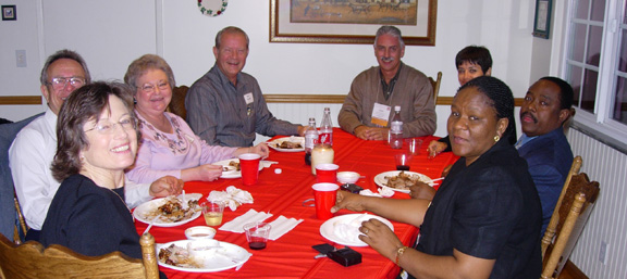 A large Rotarian audience with bated breaths filled the tables and joined Cameron McCune in the Pledge. Then lifted their voices to the the choral rendering of Ron, Howard and Leroy in honor of Rotary's 100 birthday. Jim Young, returning from a world tour with stops at India, Hong Kong, and the Philippine Islands set the tone in Tagalog. Maryalyce Jeremiah, also home from CSUF Women's Basketball trip (they won!) , gave us a Biblical "Thought for the Day" involving Job and the debate about why men suffer. (In light of the misfortunes of families enduring flood damage nowadays, her point was relevant). VISITORS: Karin Lindegaard, visitor from Dragor Rotary Club (Dennmark), also its President-elect enjoined our attendance at the 2006 Rotary International Convention in Copenhagen, Denmark. GUESTS: Glenn Klavens. In sales and marketing for the Fullerton Flyers, guest of Rick Crane. Frank Allen , guest of Bob Jahncke Chris and Graham Latham, guests of Scott Dowds (in absentia) Michael Herrera, guest of Fred Johnson. President Bob's Proclamation on the 100th Anniversary of Rotary: Key accomplishments: Founded February 23, 1905; now over 1.2 million members; 31,000 clubs in 165 countries; leader in world health prevention and cure of polio; 35,000 students from 110 countries as Rotary Ambassadorial Scholars; Rotary Group Study Exchange program has helped over 46,000 Young professionals in career fields; 8,000 secondary-school students in the Rotary Youth Exchange Program; 0ver 387,000 Rotarians in sponsored programs in 7,700 clubs throughout the USA; Dr. James D. Young, Fullerton Rotarian (AKA Rotary Founder Paul Harris) has performed in 365 Rotary Club world wide and raised over $250,000 for Rotary in 30 years of "Service Above Self". ANNOUNCEMENTS Rotary International 2006 Convention, Copenhagen, Dennmark Call Karin Lindegaard, 011-45-4020-1466 YWCA "Chocolate Fantasy" 6:00 PM, Friday Feb 25th at Brea Embassy Suites. Rotary Project Descriptions. Directors and Event Chairpersons turn in Project Descriptions to Randy McFarland. |