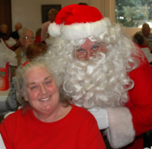 | At 11:45 am, the Ebell Club premises on Laguna Road were already jumping! Big yellow school buses were parked in the back lot and many of our guests from the retirement and convalescent homes were already assembled outside the building waiting to be wheeled in to the waiting feast.