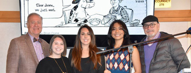 Today’s Finemaster/Recognition Master was Travis McShane. Minard Duncan wanted to let him know that he clapped for Travis more than anyone else in attendance, to which Travis promise to grant him a fine free day. Travis recognized Leslie McCarthy for her 38th wedding anniversary, “we are so excited to celebrate it. He is going to Las Vegas. I am going to Paso Robles,” Leslie proclaimed. This got a huge round of applause and laughter, “that better be more than $5 that you’re putting in the fine net!” said Travis. He went through his list, but no members were present. Marty Burbank informed Travis that today was Monica Fernandez’ birthday. Travis put $5 in to the fine net for her for not recognizing her birthday.. Travis took the liberty of looking up holidays by day. He is aware of National Puppy Day, “Today is National West Virginia Day. National Bavarian Crepes Day. National Goof Off Day is the one we are going to key on.” He asked for one person per table to stand and be recognized as the table’s goof off representative. He asked for each goof off to place $5 in the fine net and walked off the stage in a winning manner. Good job Travis! President Lins is the real winner of the day, “I may be the biggest goof off at my table, but who is the luckiest guy in the room right now? Look at my table.” President Lins is referring to him sitting in a table of beautiful women. One more beautiful than the next.